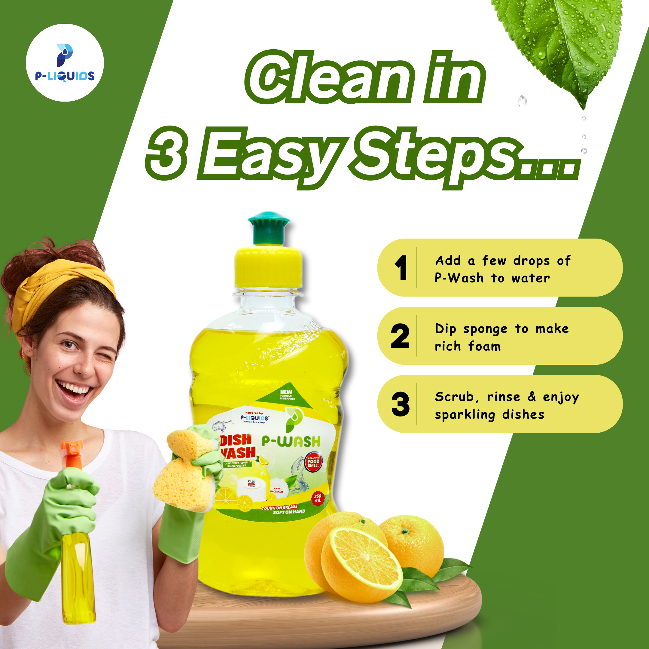 P‑Liquids Dish Wash (250ML) is a convenient and effective cleaning liquid designed for light to moderate dishwashing tasks. Its powerful grease-cutting formula removes food residue efficiently while being gentle on your hands. The compact 250ML size makes it ideal for small households, guest kitchens, or travel use. Made locally in Amritsar, this dish wash combines quality, care, and a refreshing scent to keep your dishes sparkling clean wherever you are.