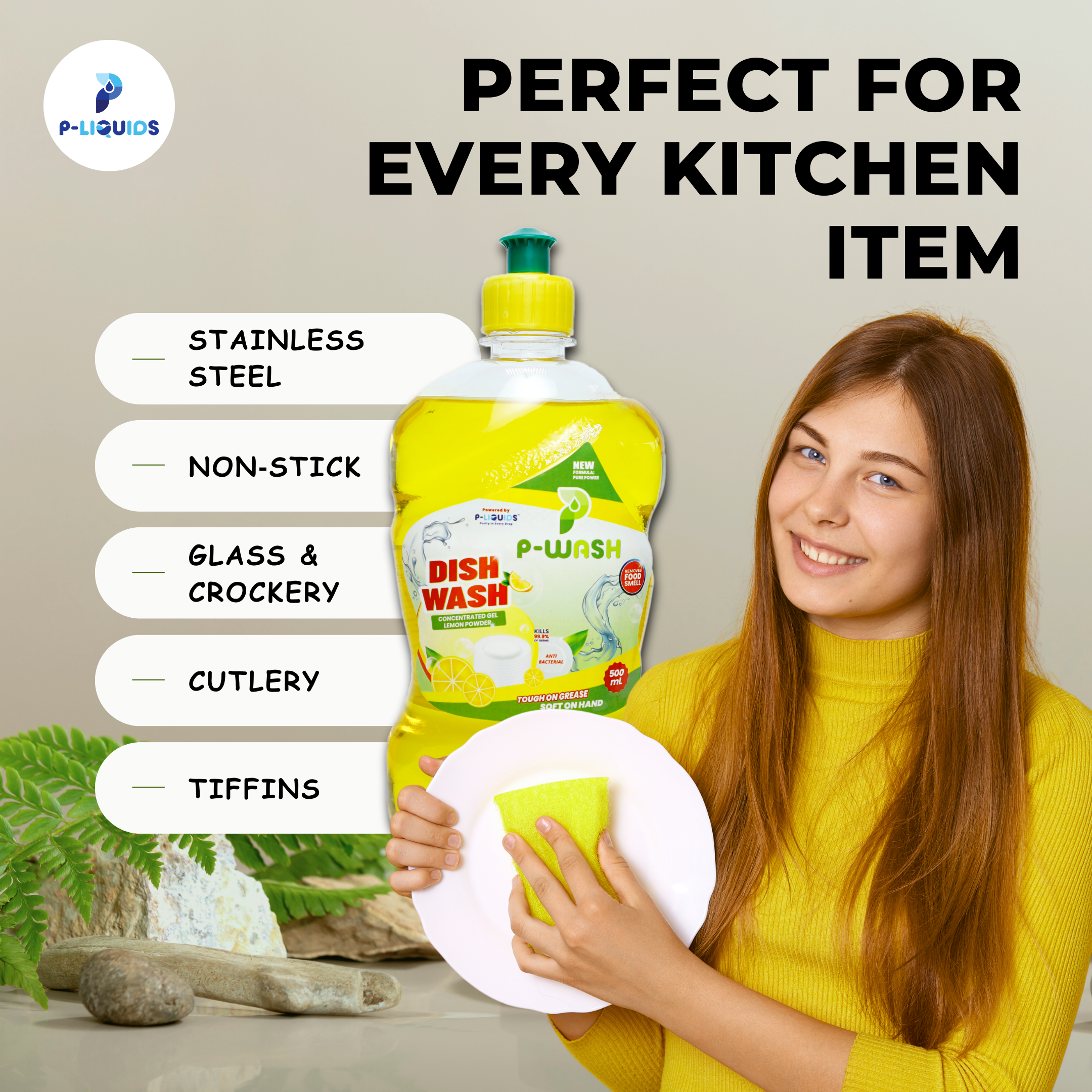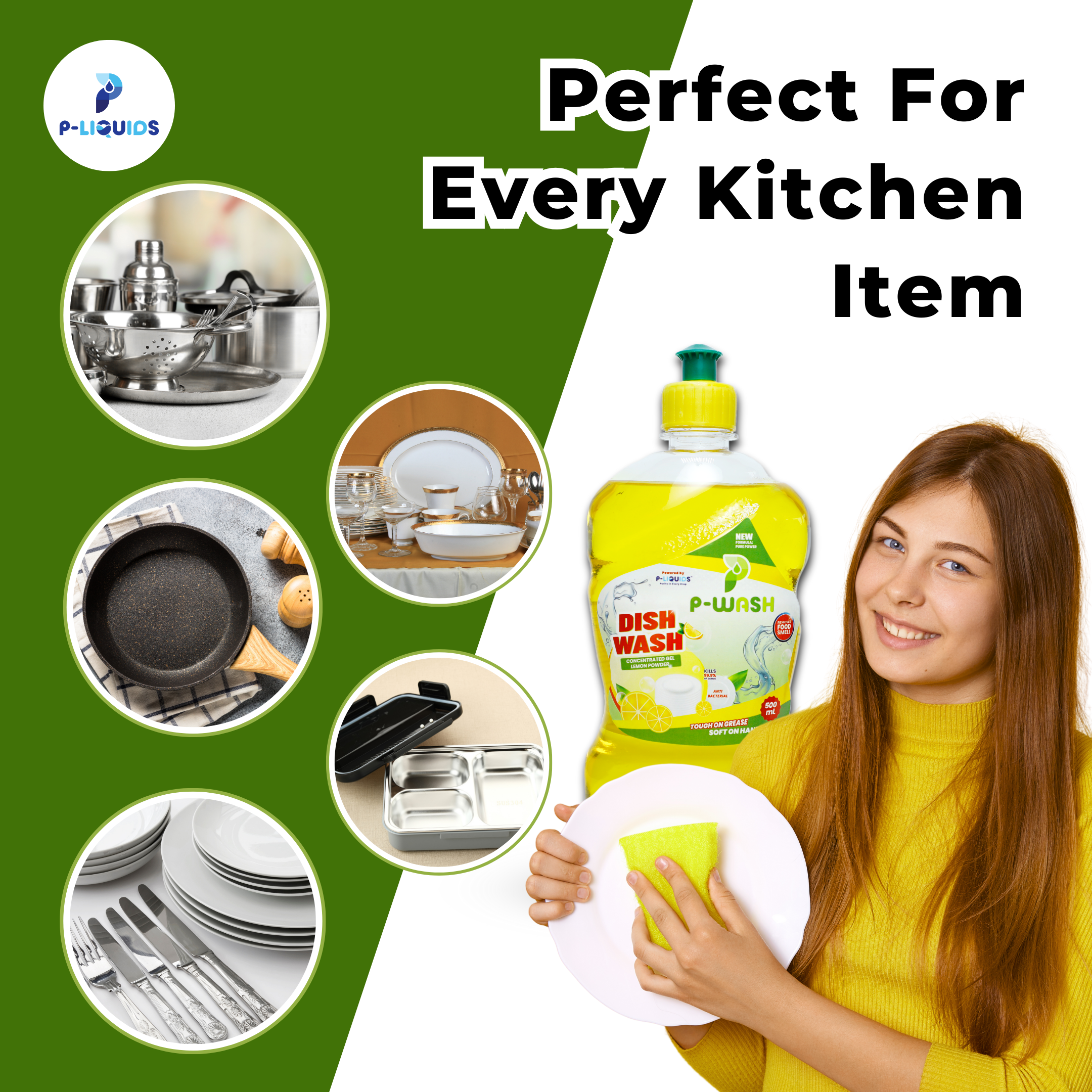 P‑Liquids Dish Wash (500ML) offers a powerful yet gentle cleaning solution for everyday dishwashing needs. Its grease-cutting formula easily removes stubborn food residues, leaving your dishes sparkling clean without drying out your hands. The convenient 500ML bottle is perfect for regular household use, providing easy handling and controlled dispensing. Proudly made in Amritsar, this dish wash combines efficiency, care, and a fresh scent for a pleasant kitchen experience.